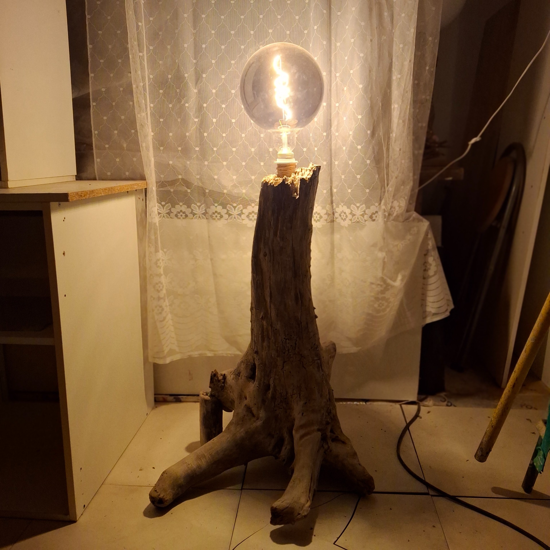 Lampe en bois flotté