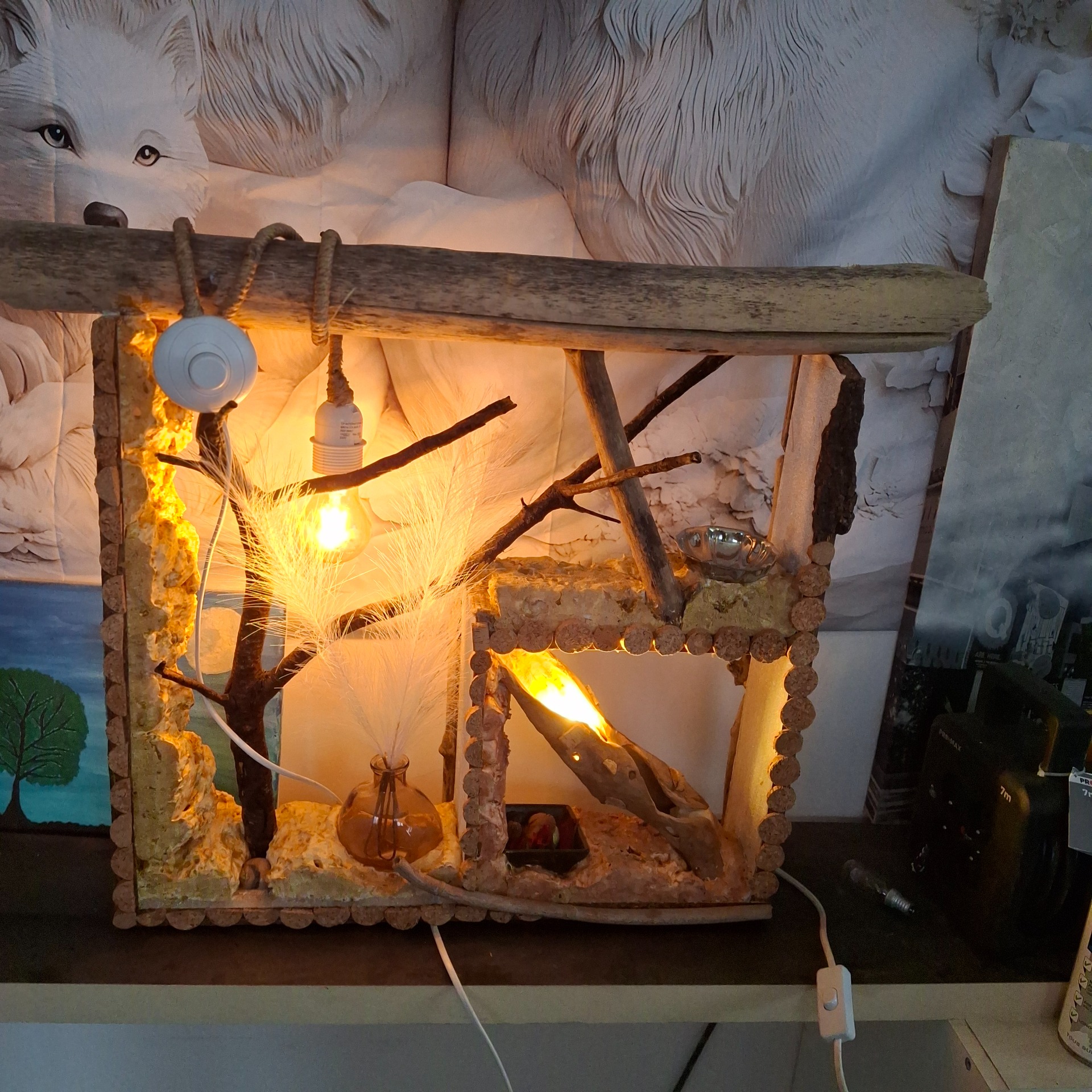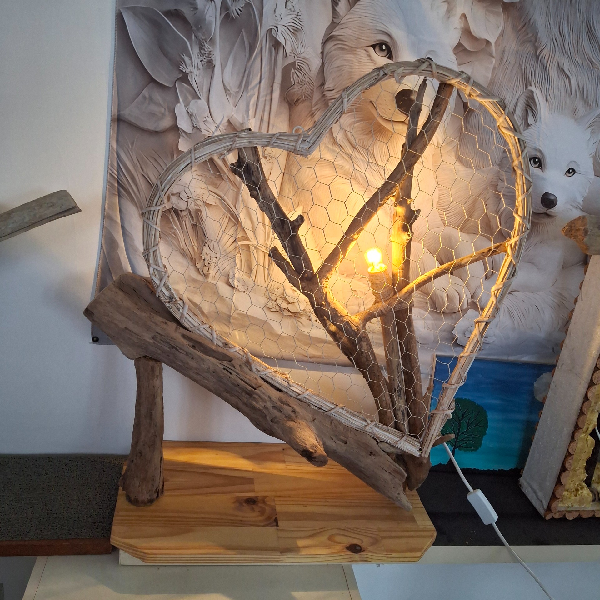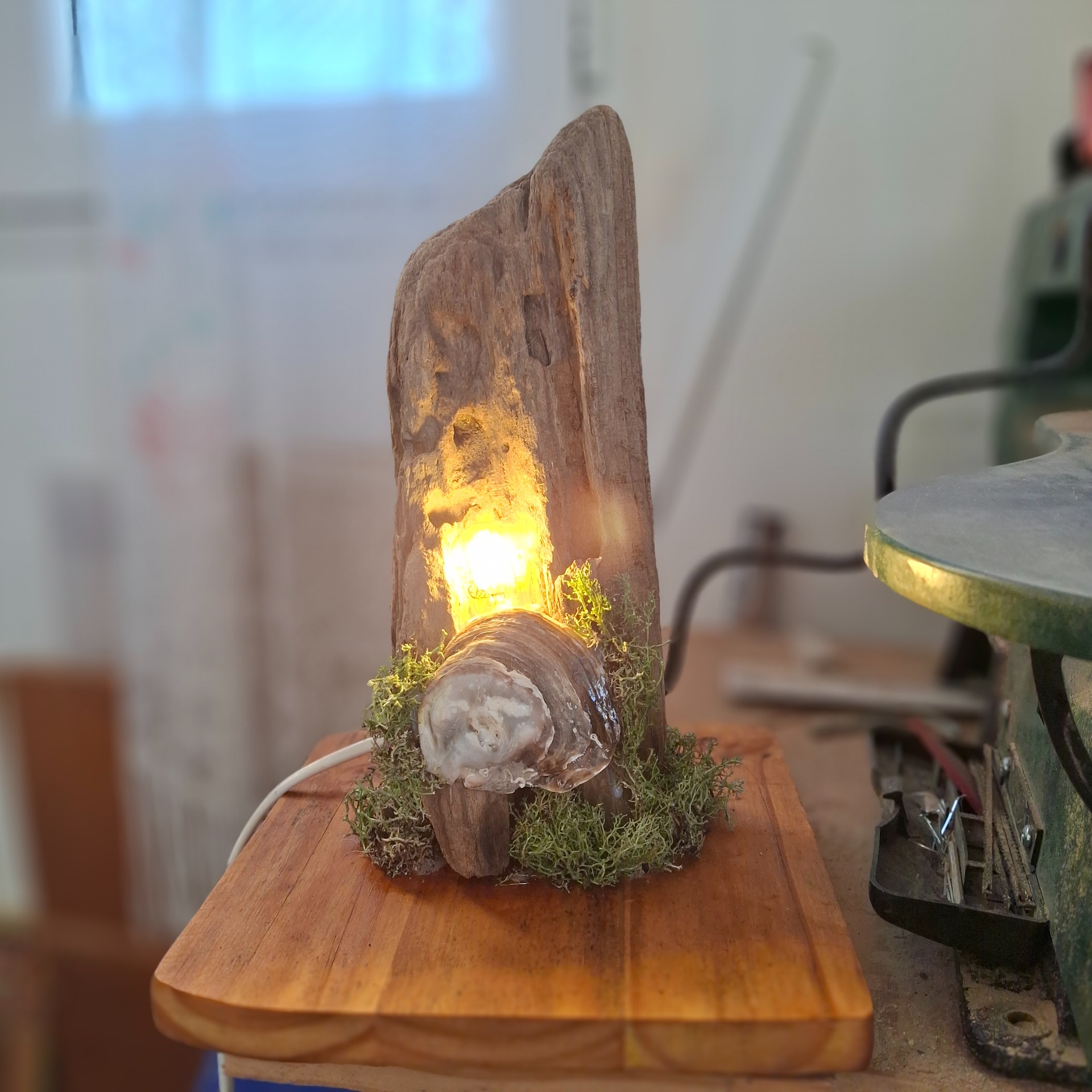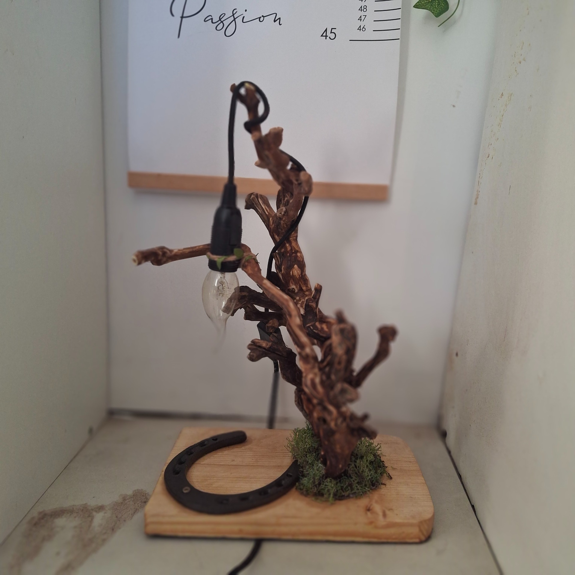 Lampe en bois flotté unique