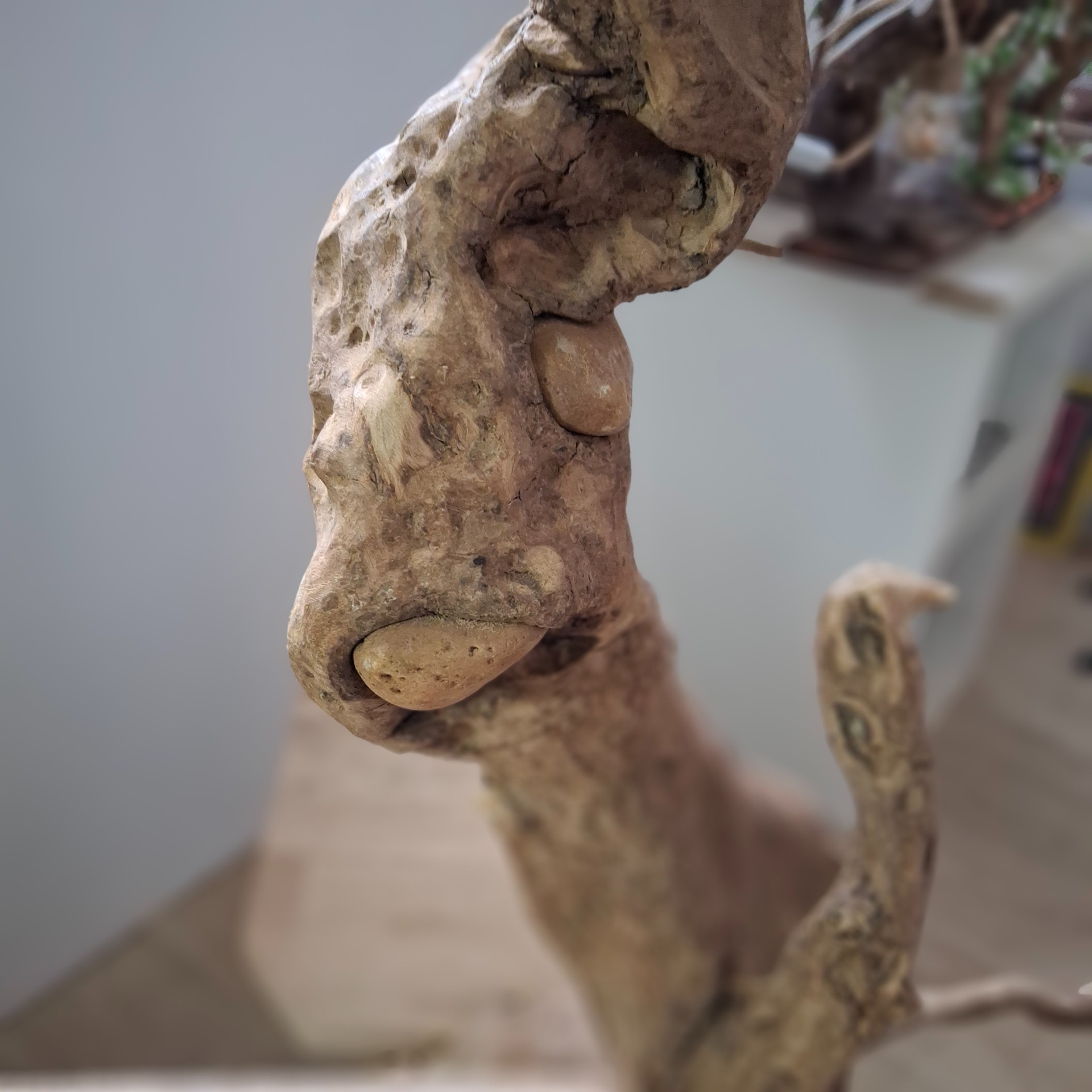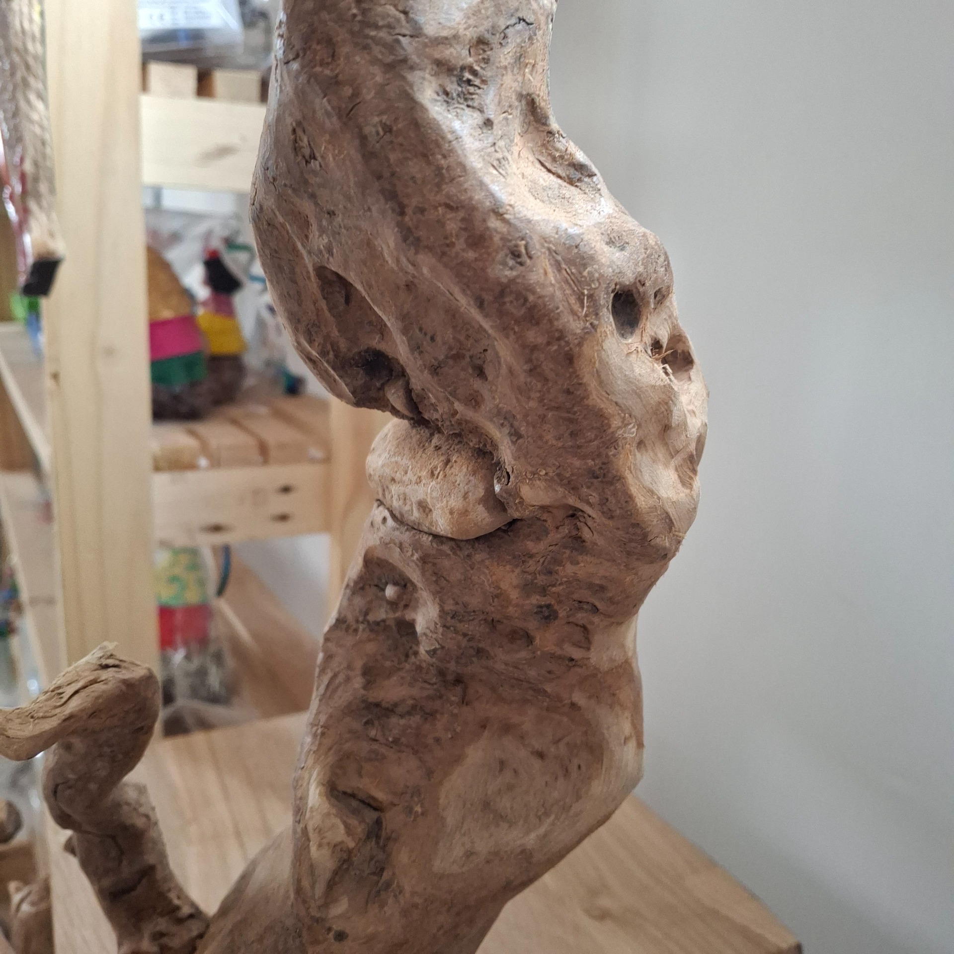 Le socle est un morceau de bois venu de la mer, bois flotté prêt à recevoir le poids de votre animal.