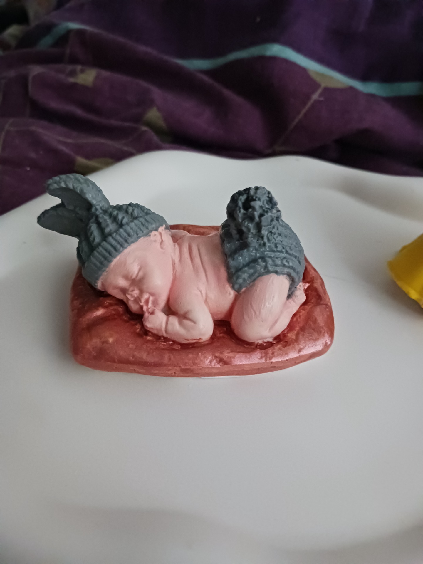 Présentation d'un adorable bébé en plâtre magnifiquement fabriqué à la main. Chaque petit bébé est peint avec amour et repose sur son propre oreiller délicat, ce qui en fait le complément parfait à toute chambre de bébé ou d'enfant. Ils sont une façon douce et charmante de décorer et d'ajouter une touche de fantaisie à n'importe quel espace. Que vous recherchiez un cadeau de fête de naissance unique ou un souvenir spécial pour un nouveau parent, ce bébé en plâtre ravira à coup sûr. Apportez une touche d'innocence et de joie dans votre intérieur avec ces précieux petits bébés en plâtre.