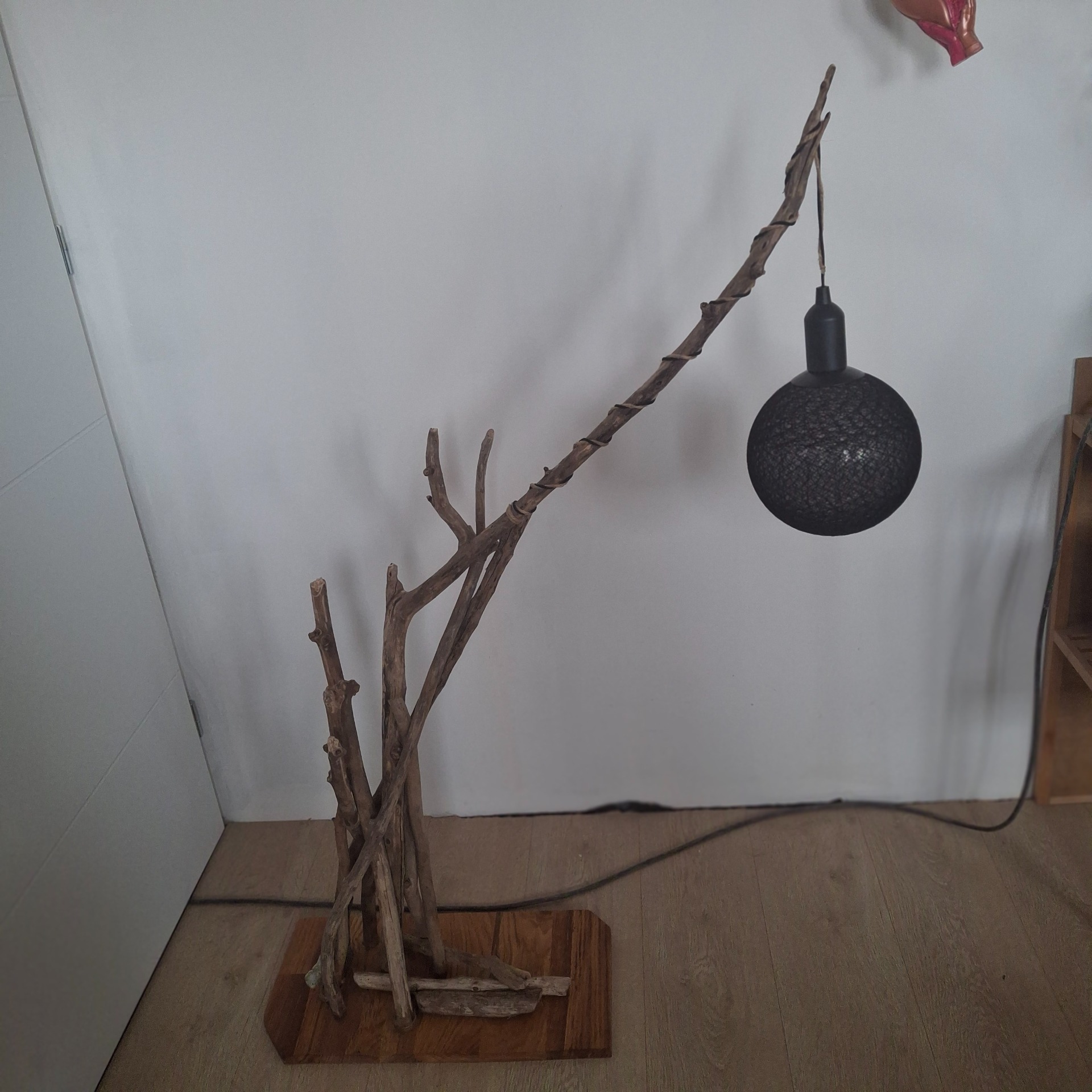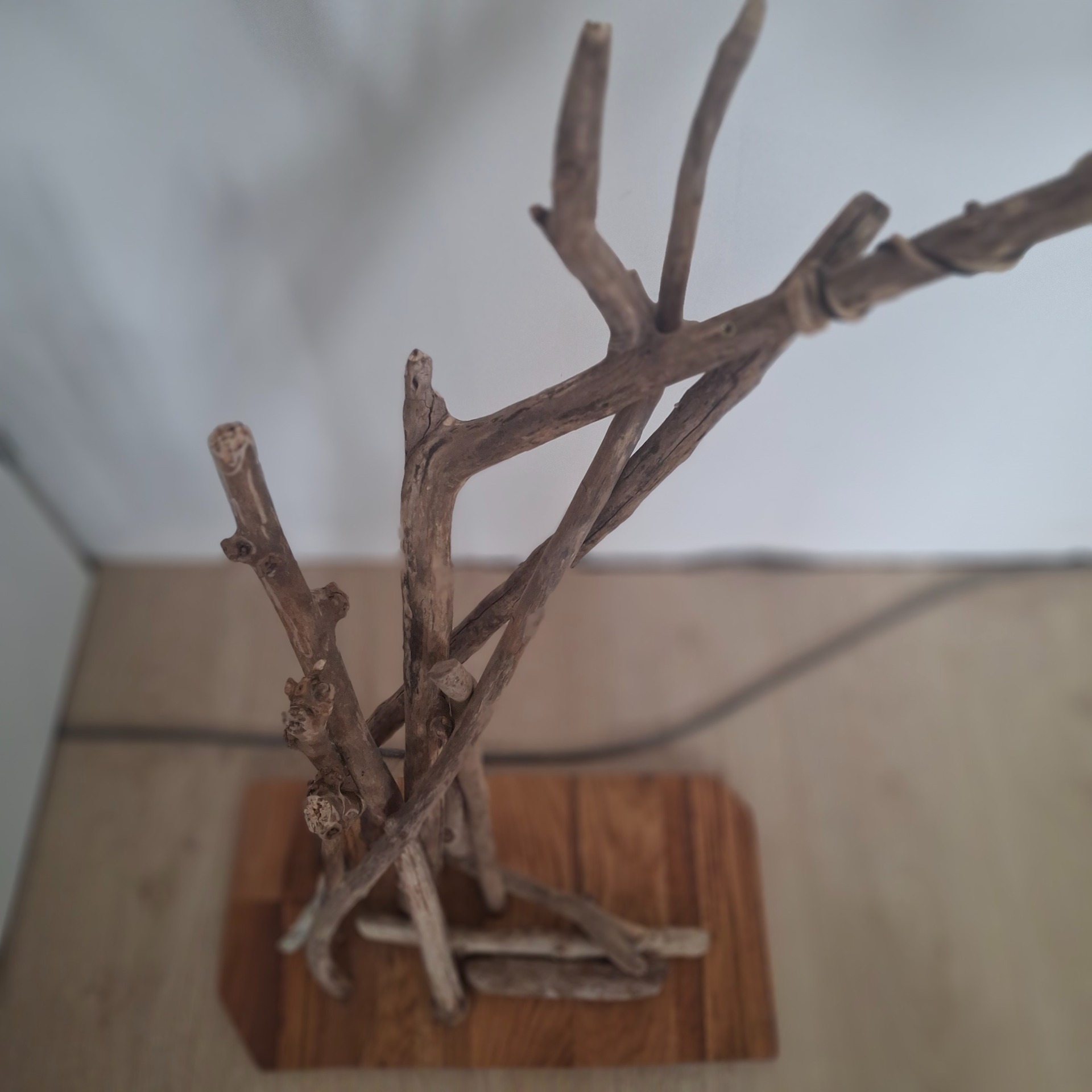 Fixés sur un beau socle en chêne coloré à l'huile de lin, ces bois constituent un assemblage pour créer une lampe en bois flotté.